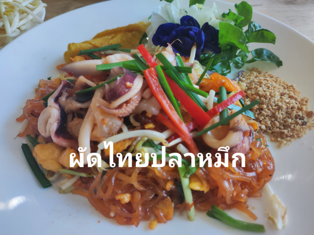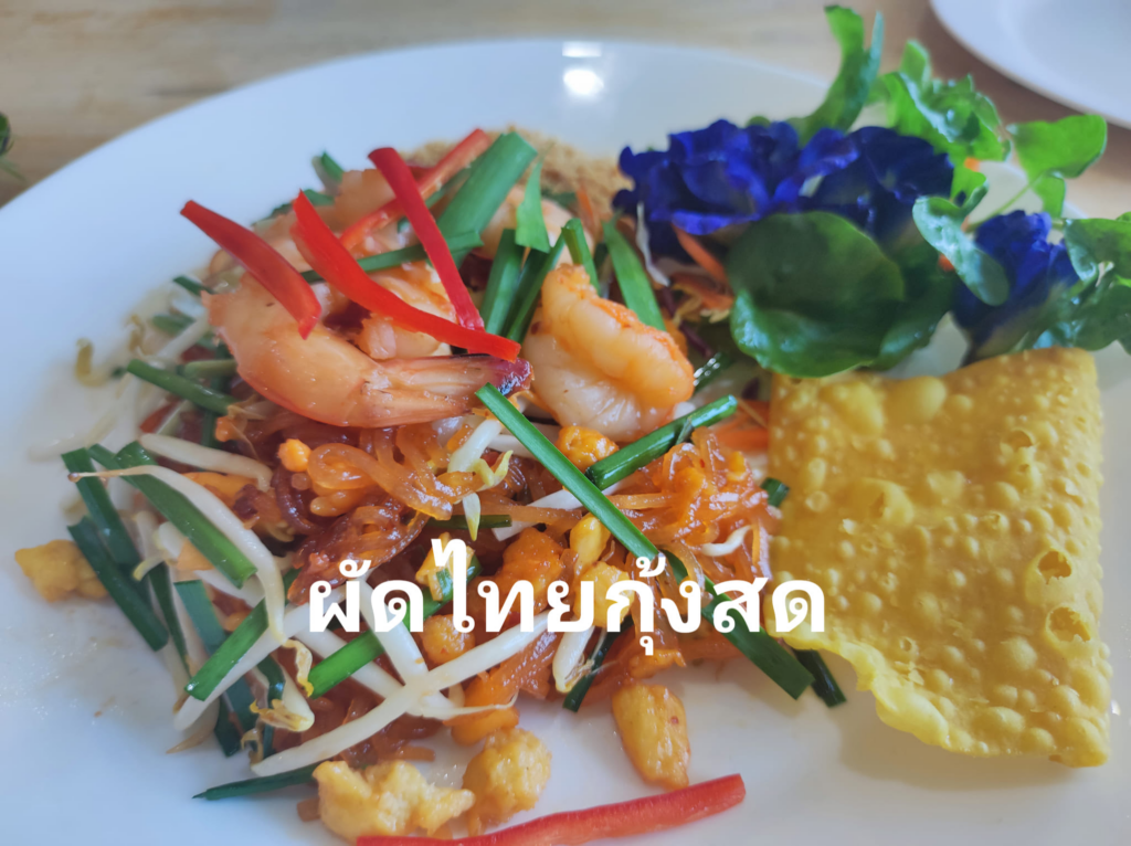 - ครัวครูบุษบา ผัดไทยกุ้งสด แกลง ระยอง