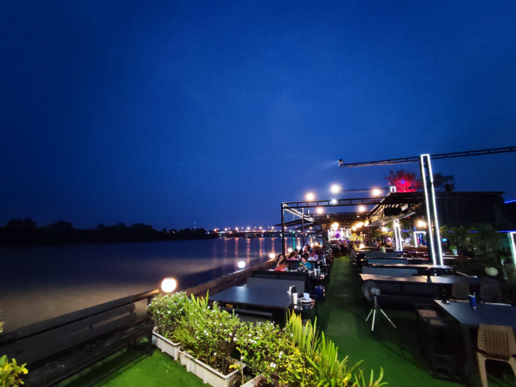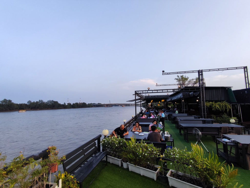พามาทานอาหาร ริมน้ำบางปะกง ฟังดนตรีสด ชมวิวพระอุโบสถ