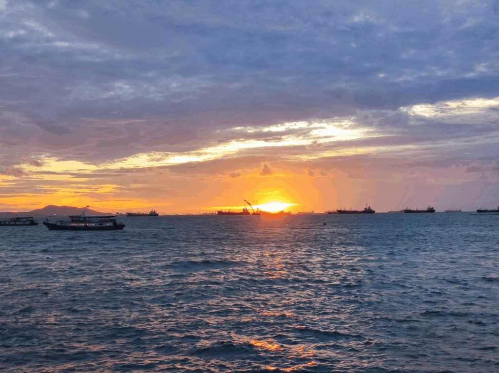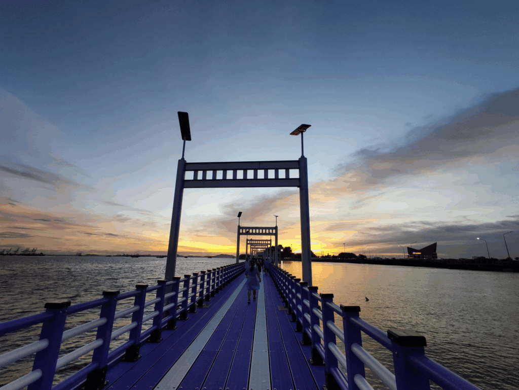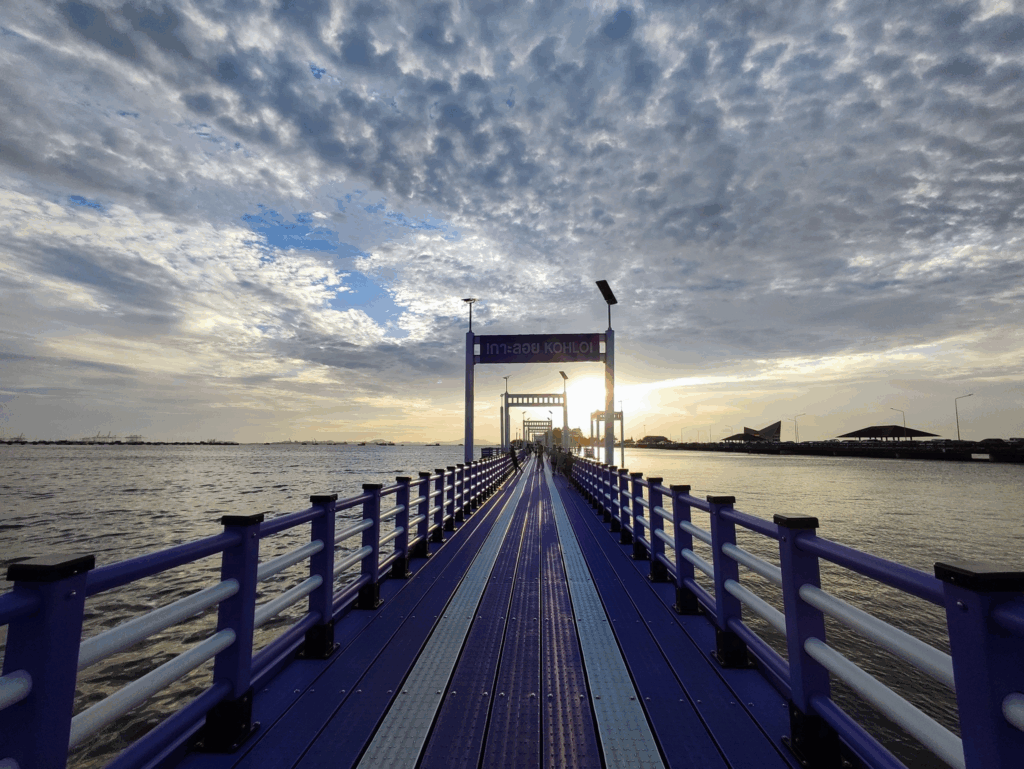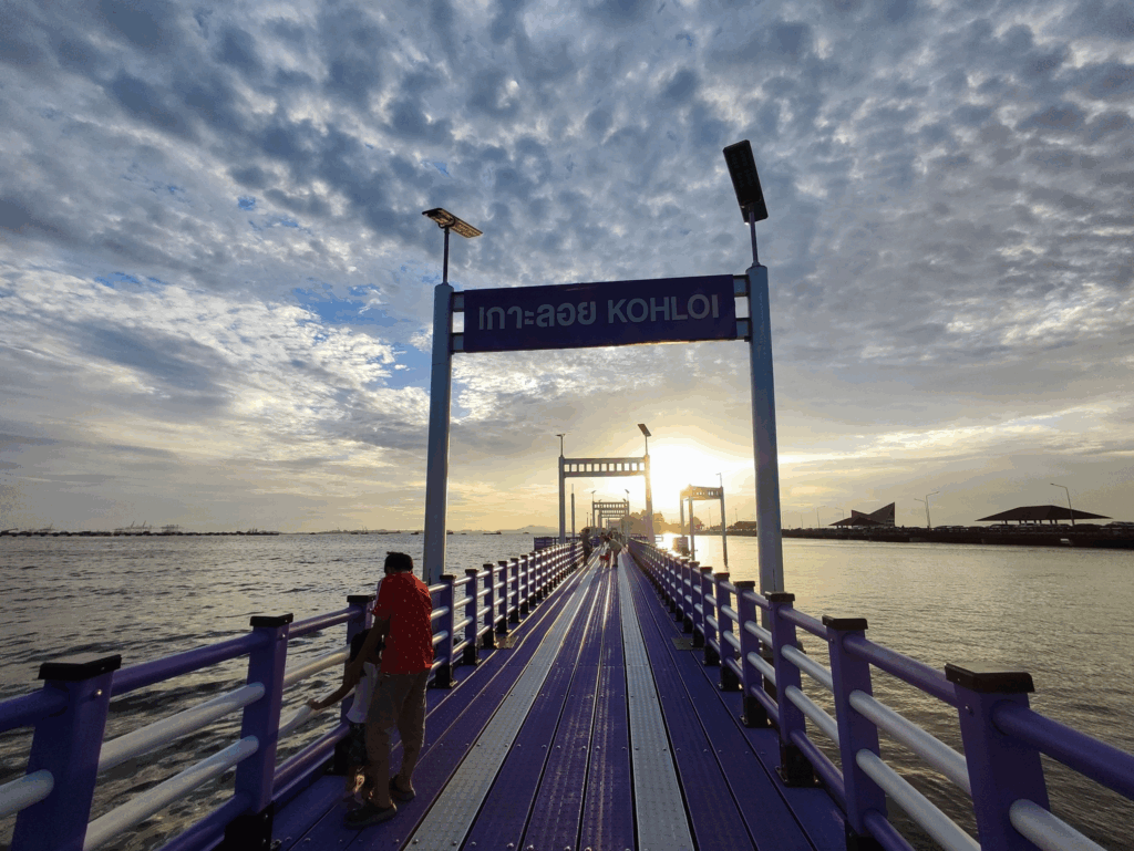 สะพานม่วง สะพานลอยน้ำเมืองศรีราชา บรรยากาศยามเย็น บนสะพานลอยน้ำสุดโรแมนติก